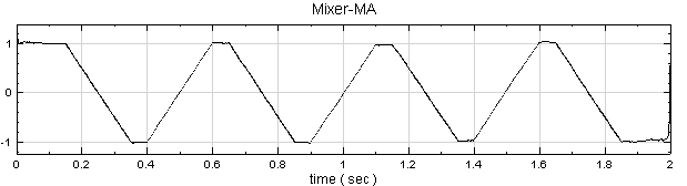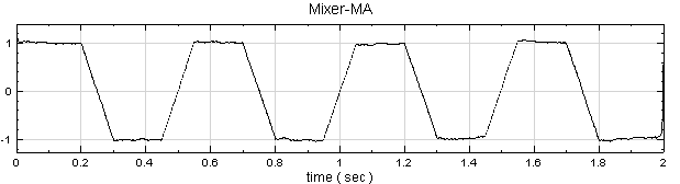 按照步驟 2 對 Mixer 再做一次 Moving Average,產生名為 MA2 圖示,但改變其 AverageLength 為 0.2,並將結果用 Viewer 繪出。