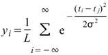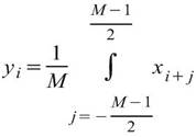 上式的意義為:總面積為1,時間軸上長度為 M 的長方形濾波器對輸入訊號做折積(convolution)。