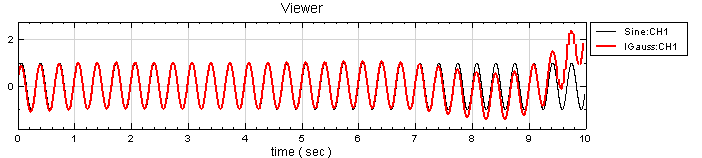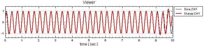 濾除後結果接上 Channel Viewer,可發現結果還算接近原本的 Sine Wave。而在訊號尾端,濾除結果與原本 Sine 訊號有差異,是濾除不夠乾淨,而需調整參數以獲得更佳結果。