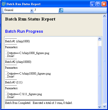 啟動 Batch Run,運算過程中無論是成功還是失敗,執行過程的訊息都會在 Batch Run Status Report 中記錄下來。