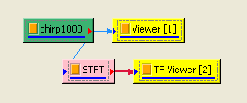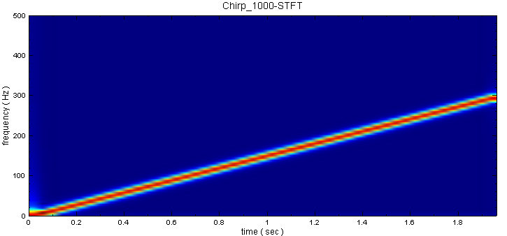 以下範例(Example)以一個鳥鳴訊號 (Chirp ) 作輸入,利用 Visual Signal 作時頻分析,可以出現頻率隨時間線性變化。