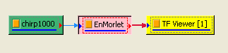 以 Compute / TFA / Morlet Transform 對輸入訊號作計算,再以 TFA Viewer 繪出,可明顯看到在越高頻的地方,頻率散佈範圍越大,轉換的效果越差。