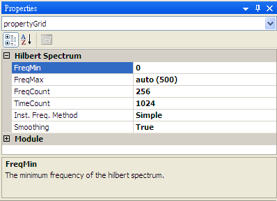 顯示Hilbert Spectrum時設定的最小頻率。 |