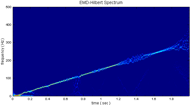 Hilbert Spectrum:將輸入訊號經Hilbert Transform後,計算出每個時間點的瞬時頻率。