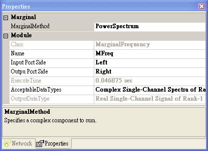 Marginal Frequency / Marginal Time:將計算出之時頻分析結果對頻率域/時域作積分計算。