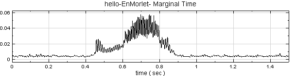 範例(Example)以聲音訊號 hello.wav 作為訊號源,利用 Visual Signal 中的 Enhanced Morlet Transform 分析其時頻圖,再以 Marginal Time 計算訊號時間域的分佈。