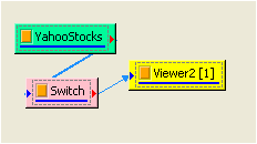 DllProperties 中的 Company 可以輸入公司縮寫,例如 2330.TW ( 台積電 )等,再將其接至 Channel Switch 選擇 開盤價、收盤價、成交量等,最後用 Channel Viewer 連接觀察其結果,。