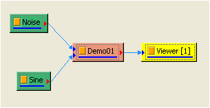 將 Noise 及 Sine Wave 接至 demo1 元件,再利用 Channel Viewer連接觀察其結果,如下圖。