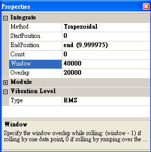 設定計算窗的大小,即為計算訊號元素的數量。一般而言,迴轉機械檢測以時間為1秒為一個計算窗。 |