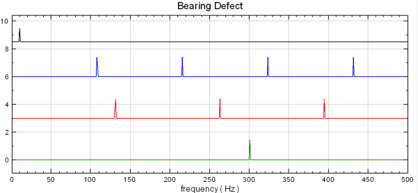 取得震動訊號之後,透過傅立葉轉換進行頻譜分析,可以利用 Bearing Defect 比對頻譜,檢視特徵頻率是否靠近損壞頻率。