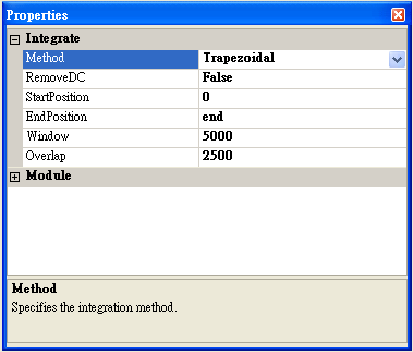 數值積分的方法,可選擇 Simple (長方形法)與 Trapezoidal (梯形法)。 |