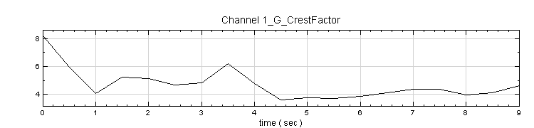 Crest Factor 為用來評估振動中所包含衝擊訊號的大小,主軸和軸承等迴轉機械製造商可以利用 Crest Factor 值評估軸承內環、外環、滾珠之間是否有撞擊訊號產生,可以彌補 RMS 只能評估整體振動的不足,發現更微小的敲擊,判斷軸承是否有缺陷的重要指標。