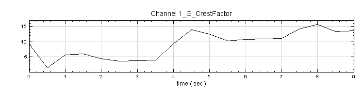 在一段時間內,可以利用震動加速度、速度或位移等訊號,並且結合 RMS 及 Peak 求得 Crest Factor。