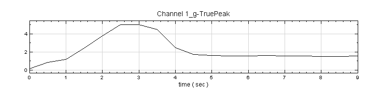 將調整過後的訊號經由 Peak 處理,Window 大小設定為取樣頻率,Properties / VibrationLevel / Type 設定為 TruePeak ,即可以隨著時間及轉速增加,觀察真實的 Peak 變化。