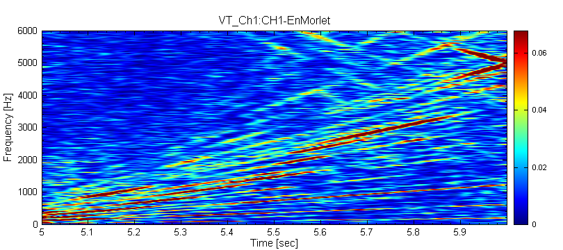 以下範例為一個鳥叫訊號 (Chirp Signal),利用 Visual Signal 分析其頻譜圖以及時頻圖。
