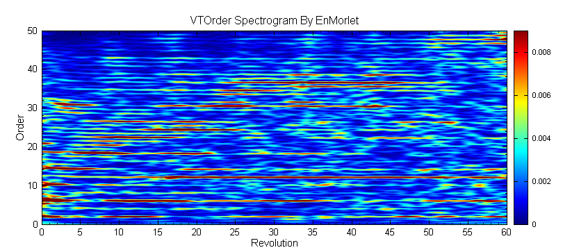階次頻譜圖目的在於方便觀察各種機械倍頻,觀察倍頻能量隨著轉速產生的變化,階次頻譜需要有兩種訊號,包括基本的震動或噪音訊號,轉速計 (Tachometer) 的原始脈衝訊號,便可以將原本只有震動或噪音的時頻圖為轉變為階次頻譜圖。