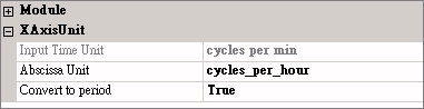 另外可再調整 Properties / Convert to period 為 True,並將 Abscissa Unit 設為cycle per hour,可將 X 軸由頻率轉變為週期,並以小時為單位,如下圖所示。