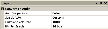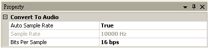 在Properties 下可看到 Samplerate = 10000 Hz,Bits Per Sample = 16 bps。