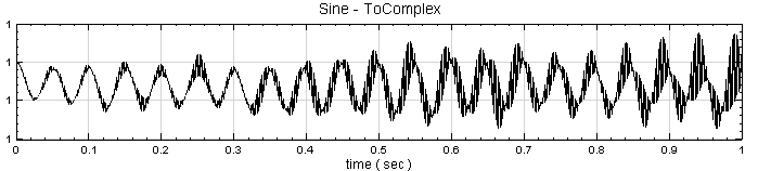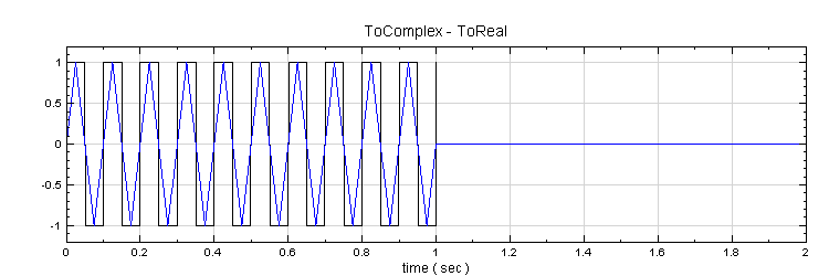 在 ToComplex 的輸出訊號格式可在 Properties 的 Module 類別下,欄位 OutputDataType 查詢,此輸出訊號已變更為 Complex。