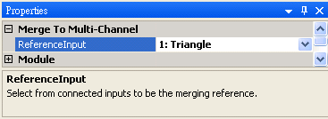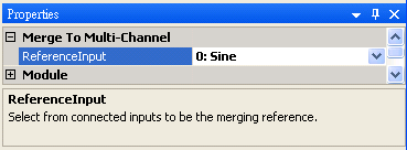 參數 Reference Input 設定本模組輸出訊號的通道數與訊號時間軸資訊是參考那一個輸入訊號,預設為 0,代表輸出訊號的時間軸參考第一組輸入訊號。其它未被指定為數 reference 的輸入訊號,其時間軸資訊會直接套用第一組訊號的設定。套用時間軸設定的原則是,缺少資料的時間點會補 0,時間超過參考的資料就刪除。