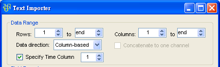 ,或以 Source / Opendata from file 讀取訊號檔,檔案 TestData.txt,TextImporter 中需勾選 Specify Time Column,再按確定即可。