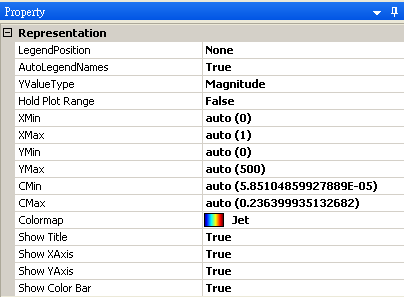 本模組接受實數(real number)或複數(complex number)的單通道(single channel) 時頻訊號(Spectra),部分參數如 Appearance、Title、Fonts and Colors、Grid與部分 Representation 與 Channel Viewer 的參數相同,可以參考Channel Viewer 說明,本節僅介紹Time-frequency Viewer所獨有參數。