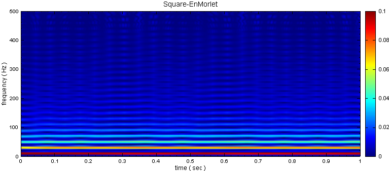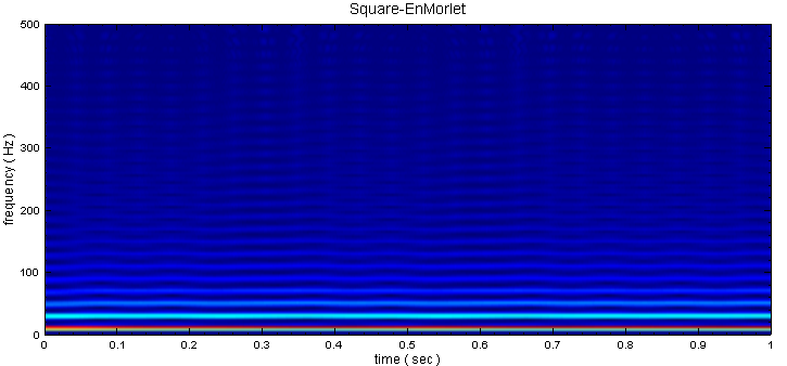 產生一個 Square Wave 訊號並以 Enhanced Morlet Transform 作時頻分析後,以 Time-Frequency Viewer 繪出,同時示範幾個常用的參數調整作進一步的說明。