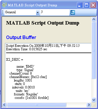 然後再開啟 DoMatlab Editor,鍵入 Y_DESC,關閉 Editor 之後用 ViewBuffer 看Matlab輸出的訊息。