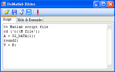 於 DoMatlab Editor 中輸入 round2 以執行此 M-file,須注意 round2 的輸出變數為 B,而 DoMatlab 的輸出變數為 Y,因此最後需將 B 代入 Y 中。