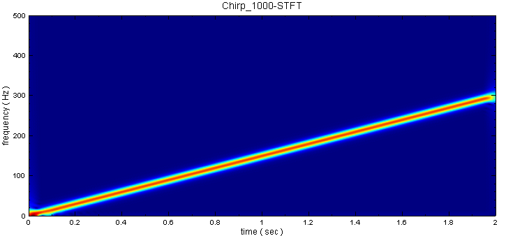 以下範例以一個鳥鳴訊號 (Chirp ) 作輸入,利用 Visual Signal 作時頻分析,可以出現頻率隨時間線性變化。