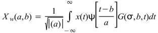 在小波轉換之前,會先乘上一個高斯函數,拿掉較邊緣、低震幅的訊號,使高頻解析度增加。此轉換的方程式如下,見 Morlet 章節: