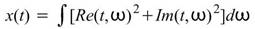 ,針對頻率軸積分,得到以時間為參數的分佈。數學上,這樣的操作可寫為: