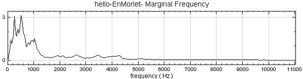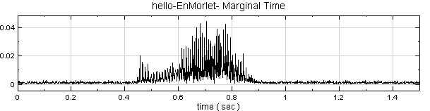 範例以聲音訊號 hello.wav 作為訊號源,利用 Visual Signal 中的 Enhanced Morlet Transform 分析其時頻圖,再以 Marginal Time 計算訊號時間域的分佈。