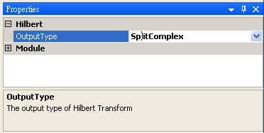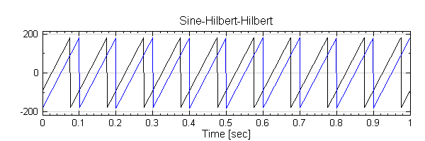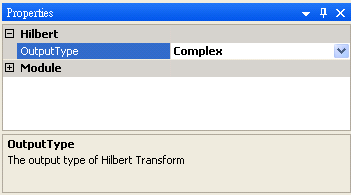 再將Hibert2再作一次 Hilbert Transform,將 Properties 內 Hilbert / Output Type調整為phase, 可看到虛部為實部對相位角作 90∘的相位偏移 ( phase shift ) 。