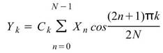 常見的離散餘弦轉換可概分八種不同類型,本模組採用的是第二型。令