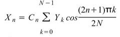 之時間序列,則離散餘弦轉換定義如下:.