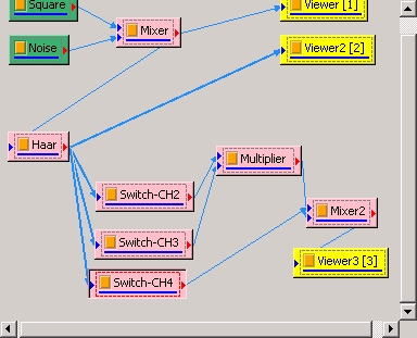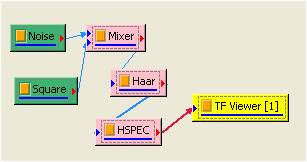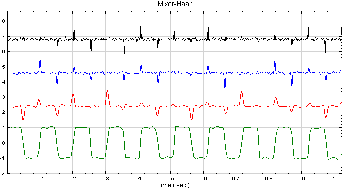 將此混合後之訊號接上 Compute / Transform /Haar transform,並設定 Filter Bank level 為 3 :