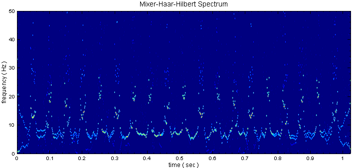 類似於 EMD,可將 HaarTransform 後的結果經由 Hilbert Spectrum 處理,即可看到時頻圖: