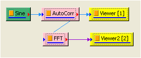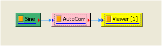 於 Network 新增一個 Source / Sine Wave,Properties /DataLength 改為 2 sec,訊號頻率為 10Hz 不變,以此訊號作 Compute / transform / AutoCorrelation ,並用 Viewer / Channel Viewer 繪出結果。