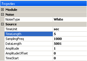 產生一個 Source / Noise,Properties / TimeLength改為 5 sec,再用 Viewer / Channel Viewer 繪出。