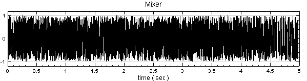 再產生一組 TimeLength 為 1.5 sec的 Noise,將此 noise 與 Time Shift 後的訊號作 Compute / Channel / Mixer 形成第二個訊號源,再以 Channel Viewer 繪出。