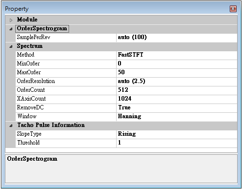 | MaxHarmonicOrder | 最大顯示倍頻,算出特徵頻率後,在圖上顯示的倍頻數。 | 5 |
