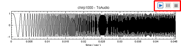 以訊號資料檔 Chirp1000.tfa 作輸入,經過 Convert To Audio 後訊號格式變為聲音訊號。
