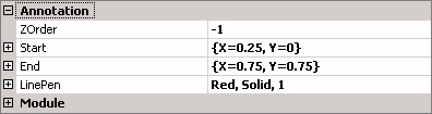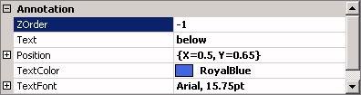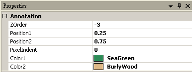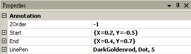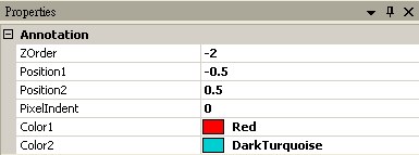 加註的繪圖設定。可設定顏色(Color)、線條樣式(DashStyle)、與線條寬度(Width),而此參數在 Text 直接被拆開。 |