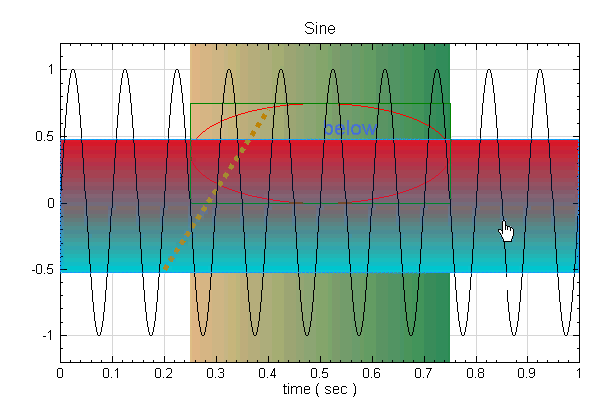 此群組包含橢圓(Ellipse)、水平線(HLine)、水平區域(HRegion)、直線(Line)、矩型(Rect)、純文字(Text) 、垂直線(VLine)、垂直區域(VRegion)等標註功能。