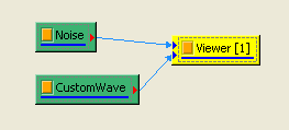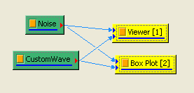 在 Viewer / Box Plot Viewer 建立一個 Box Plot Viewer,接著將 Noise 與 CustomWave 連入 Box Plot Viewer,即可畫出含有兩個方盒的方盒圖。