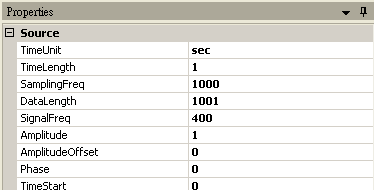 調整 Sine 的 Properties 下 SignalFreq 為 400,則圖形會改變如下圖所示: