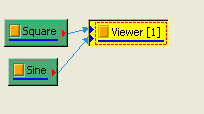 在 Source / Sine Wave 產生一組 Sine Wave,將訊號線接到同一個 Channel Viewer,這步驟會使 Channel Viewer 更新內容。由於 HoldPlotRange= True,所以更新內容時圖軸仍會維持;若 HoldPlotRange= False,則圖軸會如在下一張圖,跳回至初始設定。