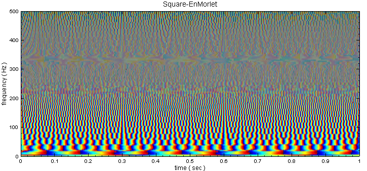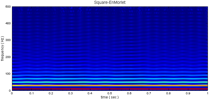 產生一個 Square Wave 訊號並以 Enhanced Morlet Transform 作時頻分析後,以 Time-Frequency Viewer 繪出,同時示範幾個常用的參數調整作進一步的說明。