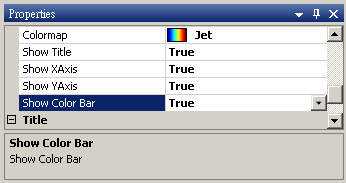 Properties / CMax 為 0.197772704820884,此值為時頻分析結果的顏色最大值,顏色最大值預設是對應資料色彩的最大值。在不同的分析情況,使用者可能對某些頻段的資料較感興趣,這時可藉由調整 CMax 的大小來改變時頻圖的色彩顯示狀況,依不同的狀況調整 CMax 可找到較適的時頻圖,若是想要調整預設CMax,可至 Perference / Plot / Time Frequency Plot 中調整 CMax 。